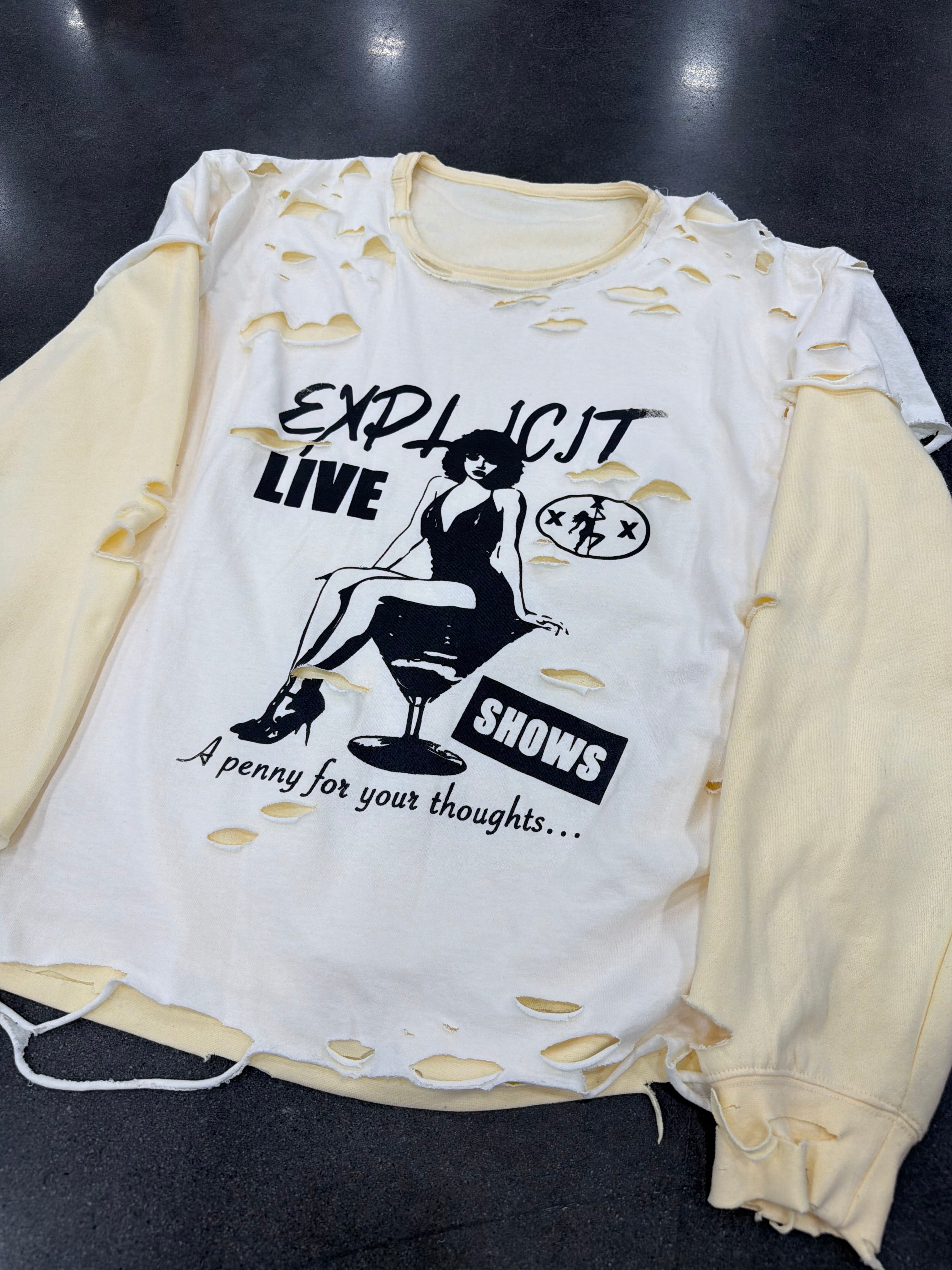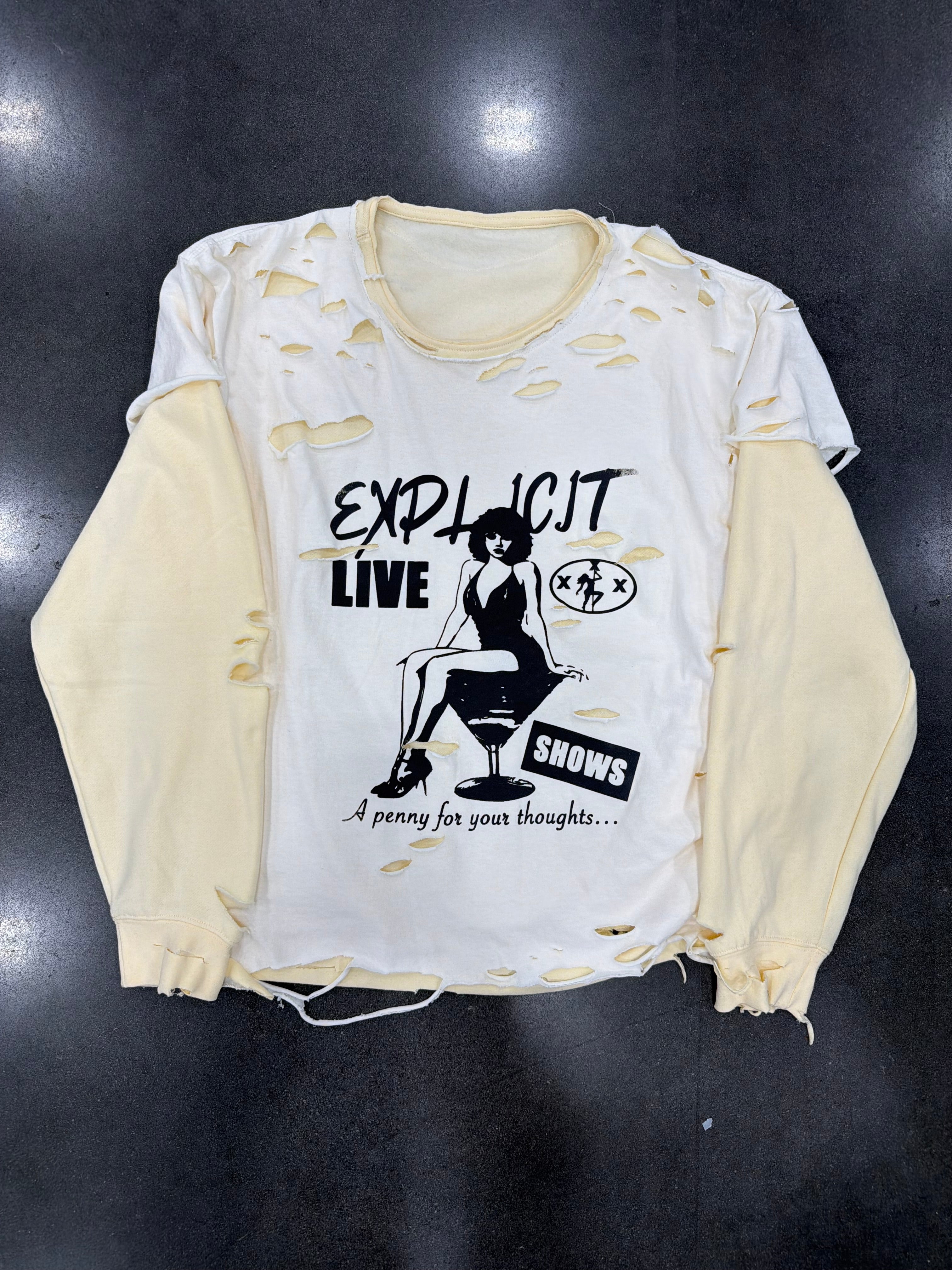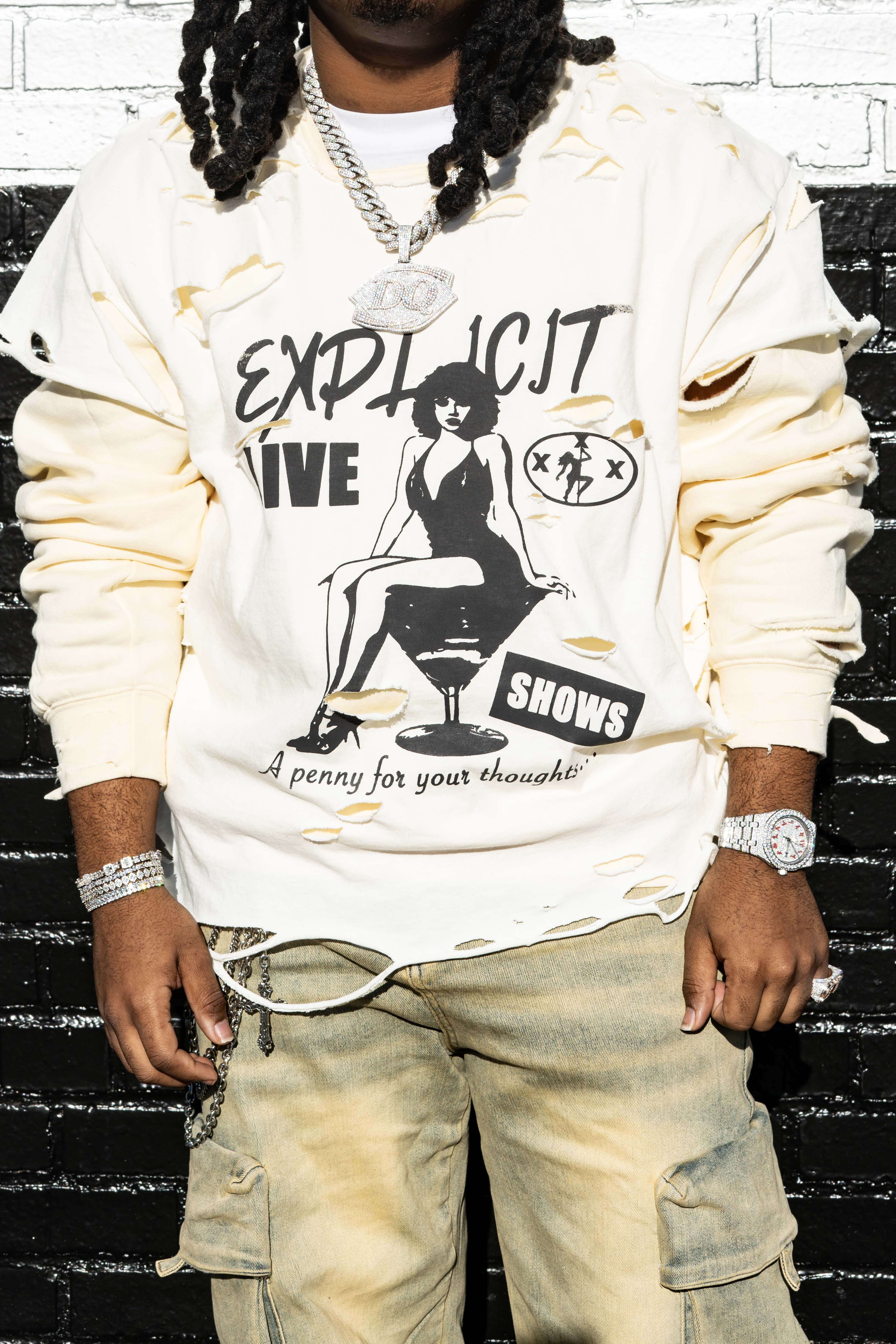 One of our most limited pieces! In hand and available early before the collection drop. Live shows features our newest explicit graphic and our most distressed crewneck yet.